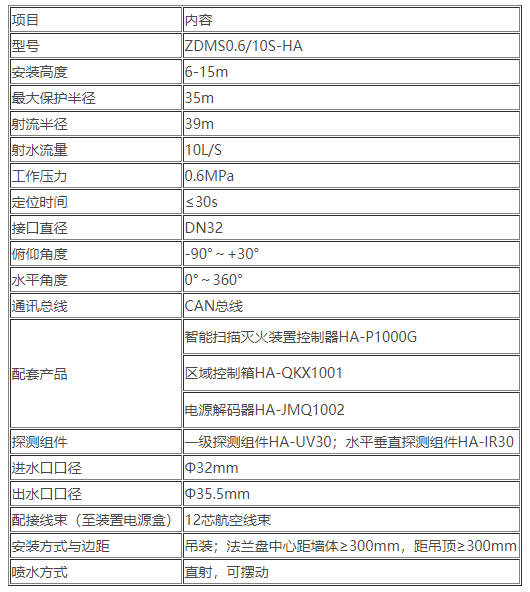 二、ZDMS0.6/10S-HA消防水炮 自動跟蹤定位射流滅火裝置技術參數